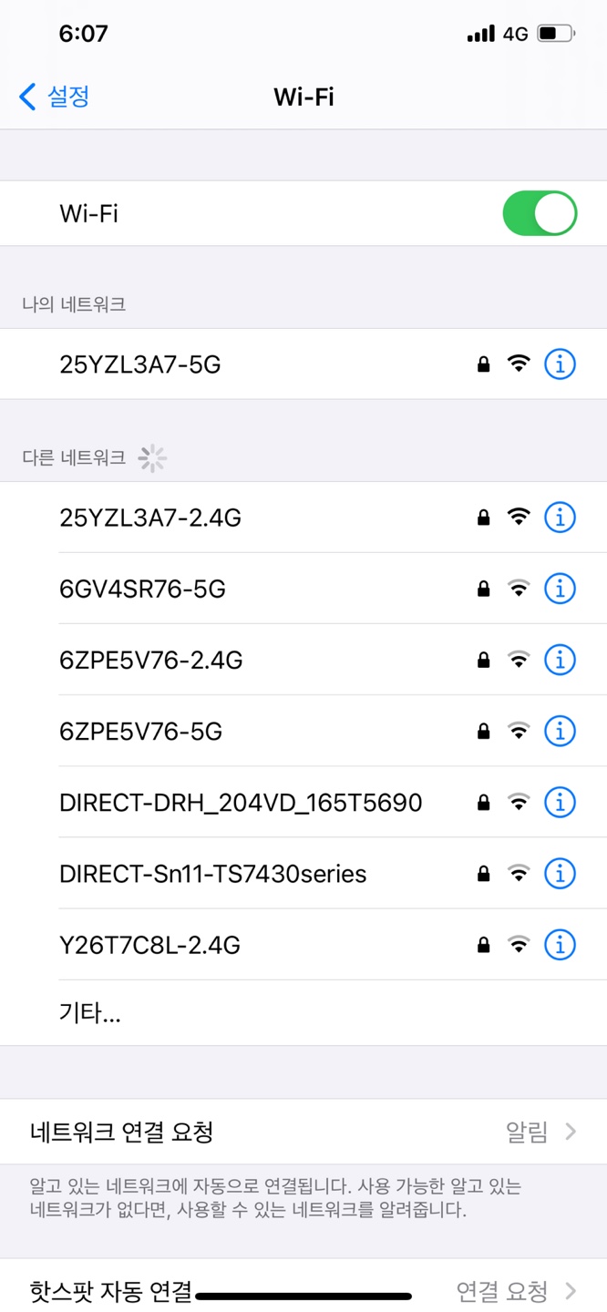 와이파이 네트워크를 지속적으로 검색하므로 외출 시 사용 가능한 네트워크 목록이 계속 변경됩니다.