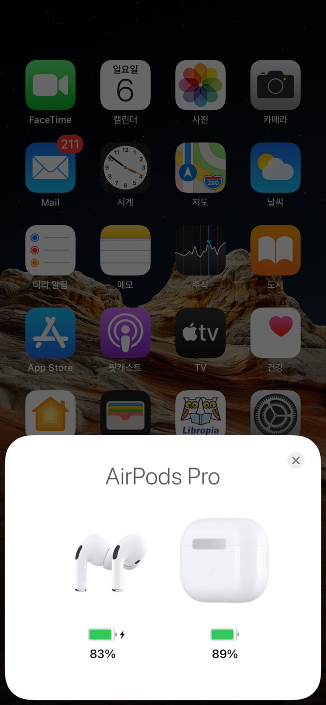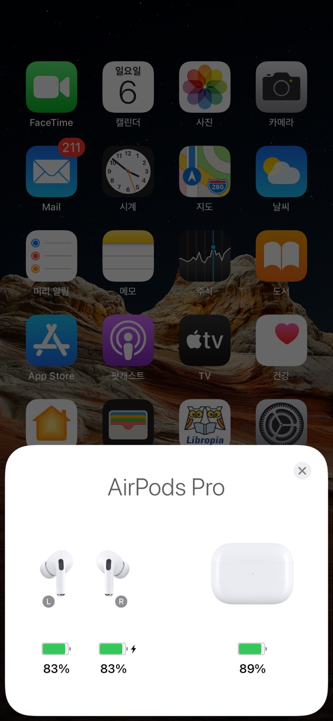 두 에어팟 프로를 케이스 보관하고 뚜껑을 열면 아이폰에서 충전상태를 확인할 수 있습니다.