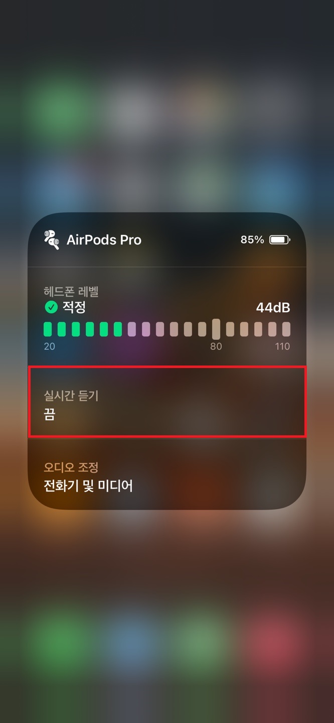 에어팟 프로로 이미 듣고 있는 상태에서 아이폰의 제어 센터에 들어가