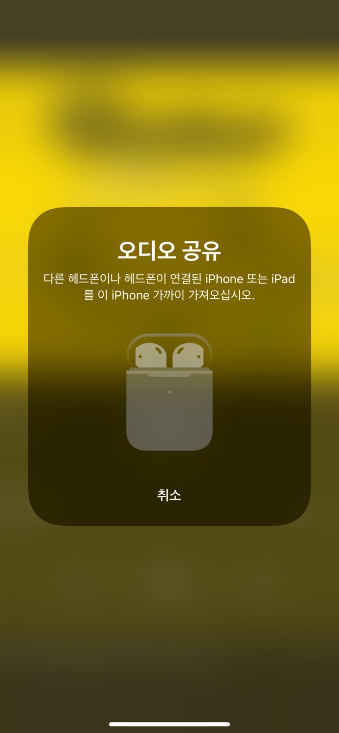 친구도 에어팟을 가지고 있다면 번거롭게 한쪽씩 나눠서 들을 필요가 없습니다.